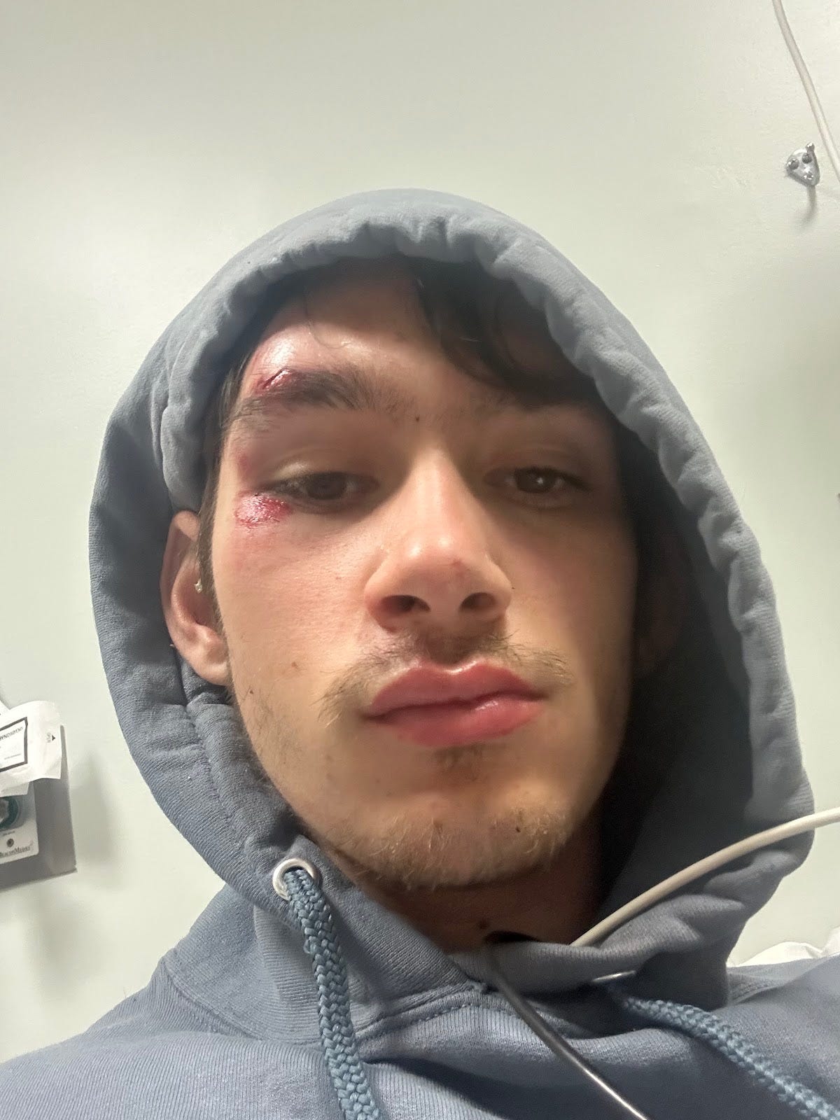 I was in Adventist Hospital urgent care in Templeton with scrapes on my face and arms.